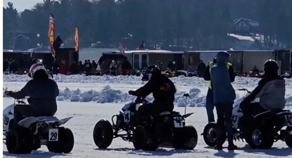 Groups included studded quads, rubber quads, dirt bikes, and UTVs, attracting competitors of all ages and skill levels. Spectators enjoyed free admission, witnessing thrilling races on the frozen lake.